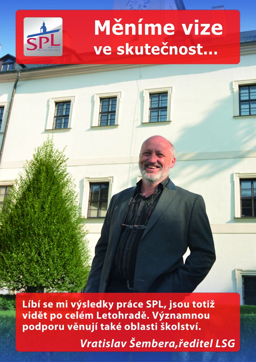 Neztratil-li jsem za ty roky mého působení Vaši důvěru a usoudíte-li, že pozitiva převládají, budu si nesmírně vážit Vaší další podpory v komunálních i senátních volbách. Abychom mohli naplnit vyřčené cíle, prosím o podporu celé kandidátky Sdružení pro Letohradsko. Starosta, byť třeba se silným mandátem, ale bez široké podpory svého týmu v zastupitelstvu, nedokáže téměř nic. Proto vás prosím o jediný křížek u názvu našeho volebního uskupení. Letohradu se dařilo věci úspěšně realizovat, protože jsme takový silný mandát od vás měli. Prosím, volte jistotu, ať se podaří dokončit započaté. Ze zkušeností víte, že se snažíme proměňovat naše město tak, aby bylo k občanům přívětivé. Učiníme vše pro to, abychom Vás ani po další 4 roky nezklamali. Uspěju-li též ve volbách senátních, z Letohradu neuteču!