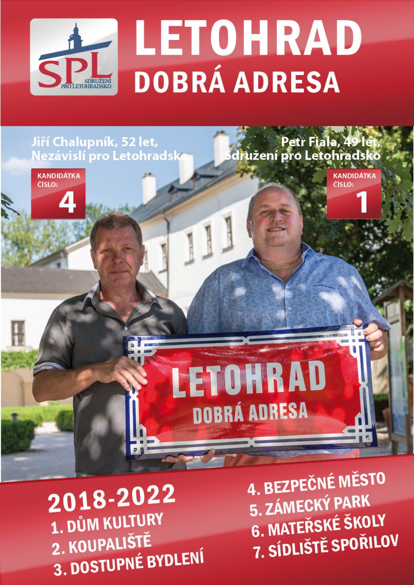 Neztratil-li jsem za ty roky mého působení Vaši důvěru a usoudíte-li, že pozitiva převládají, budu si nesmírně vážit Vaší další podpory v komunálních i senátních volbách. Abychom mohli naplnit vyřčené cíle, prosím o podporu celé kandidátky Sdružení pro Letohradsko. Starosta, byť třeba se silným mandátem, ale bez široké podpory svého týmu v zastupitelstvu, nedokáže téměř nic. Proto vás prosím o jediný křížek u názvu našeho volebního uskupení. Letohradu se dařilo věci úspěšně realizovat, protože jsme takový silný mandát od vás měli. Prosím, volte jistotu, ať se podaří dokončit započaté. Ze zkušeností víte, že se snažíme proměňovat naše město tak, aby bylo k občanům přívětivé. Učiníme vše pro to, abychom Vás ani po další 4 roky nezklamali. Uspěju-li též ve volbách senátních, z Letohradu neuteču!