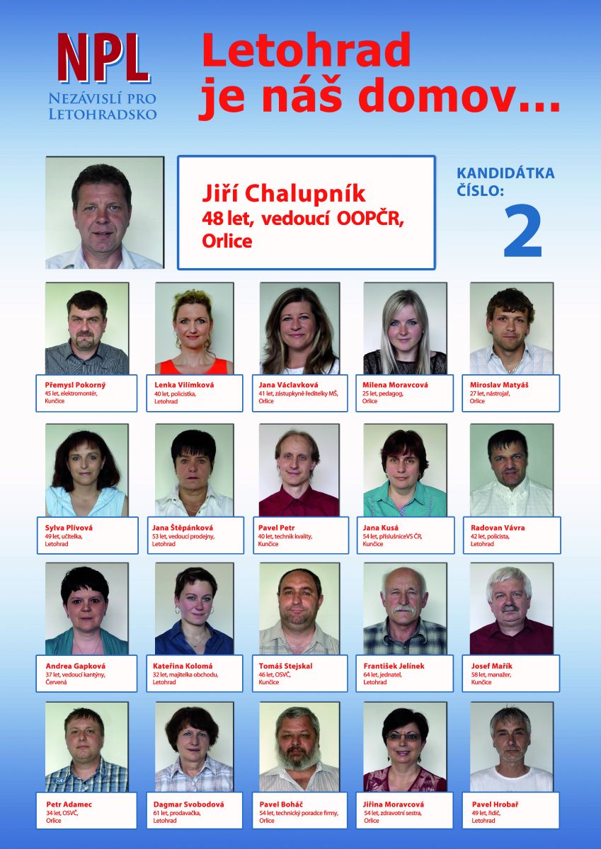 Vážení spoluobčané. Čtyři roky utekly jako voda a před námi je opět konání komunálních voleb. Sdružení NEZÁVISLÍ PRO LETOHRADSKO je znovu tady, aby se po boku Sdružení pro Letohradsko,ucházelo o Vaši přízeň. Je mezi námi řada kandidátů, kteří v právě končícím volebním období v orgánech místní samosprávy již pracovali, máme mezi sebou však i tváře nové. Jedno máme společné, nikomu z nás není rozhodně lhostejné, jak budeme v Letohradě žít, kterým směrem se bude naše město ubírat v budoucnu.