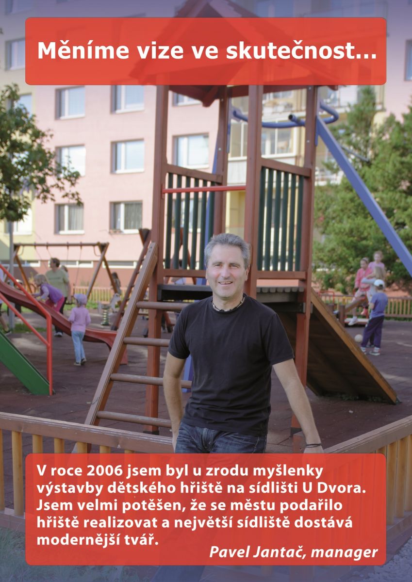 To jsme připraveni činit i následující 4 roky, pokud nám dáte důvěru. Jsou započaté velmi důležité projekty, u nichž je potřebné dohlédnout na jejich úspěšnou realizaci. Především Dům kultury, školka Taušlova, pozemky pro bydlení, náměstí, tělocvična v Ústecké ulici a řada dalších. Jak jsme zvládli plnit volební program, bylo zveřejněno koncem června v našem Občasníku. Drtivá většina avizovaného se podařila uskutečnit a za to jsem upřímně rád.